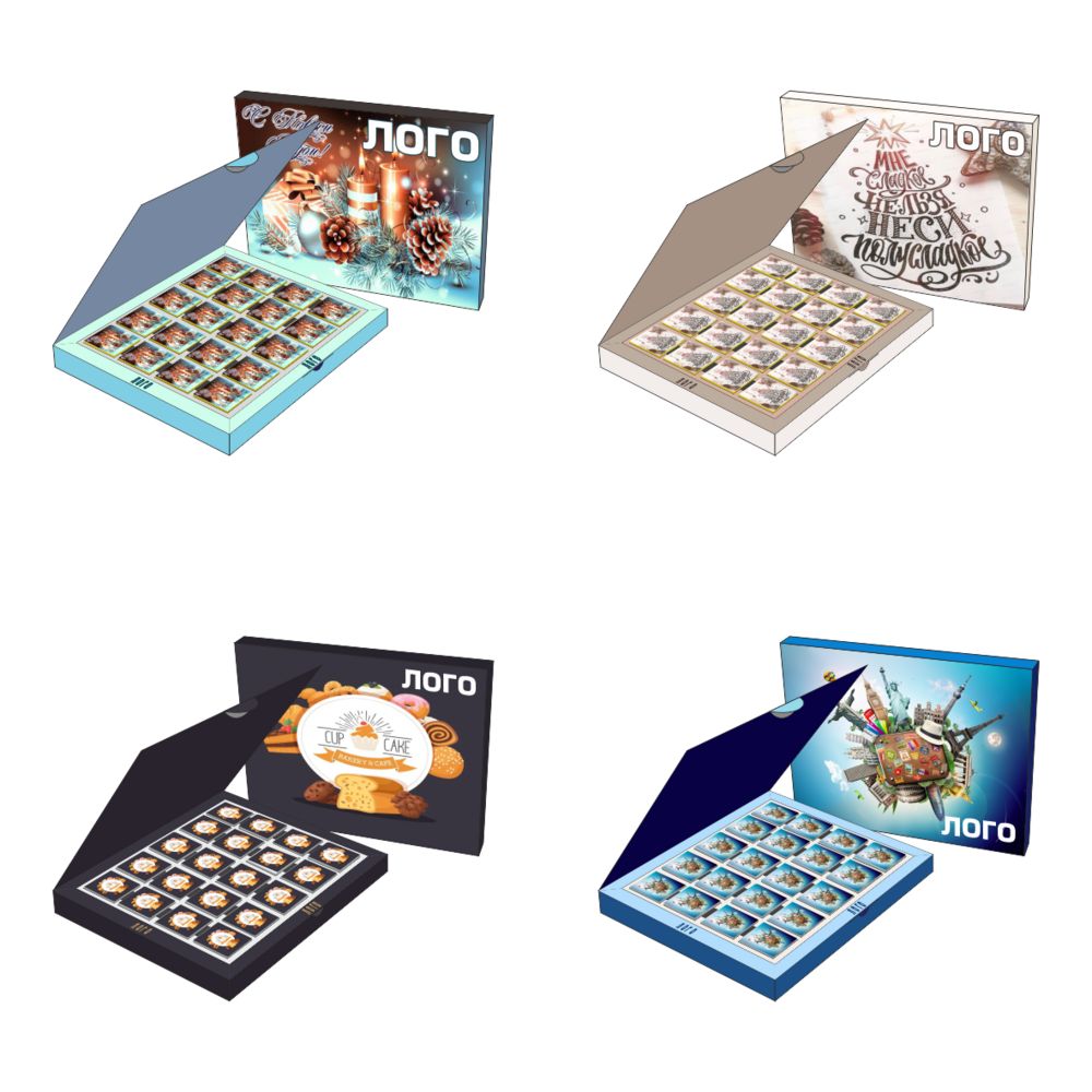 • Обертка с полноцветной печатью на каждой плитке шоколада.