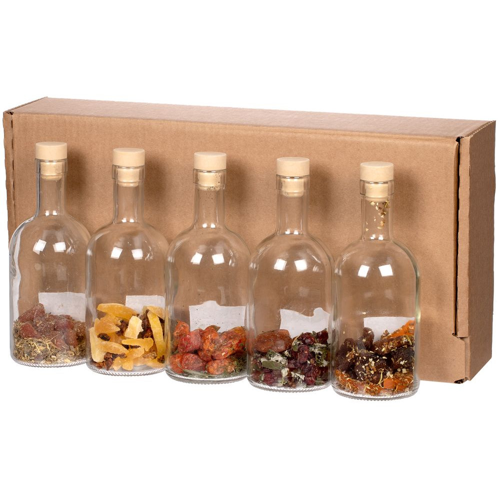 В коллекции набора, вдохновленного русскими сказками и самой природой, 5 бутылок с разными травами, сухофруктами и специями для приготовления сладких или терпких настоек. Одни подействуют как настоящий бальзам на душу, в то время как другие — взбодрят и придадут сил.