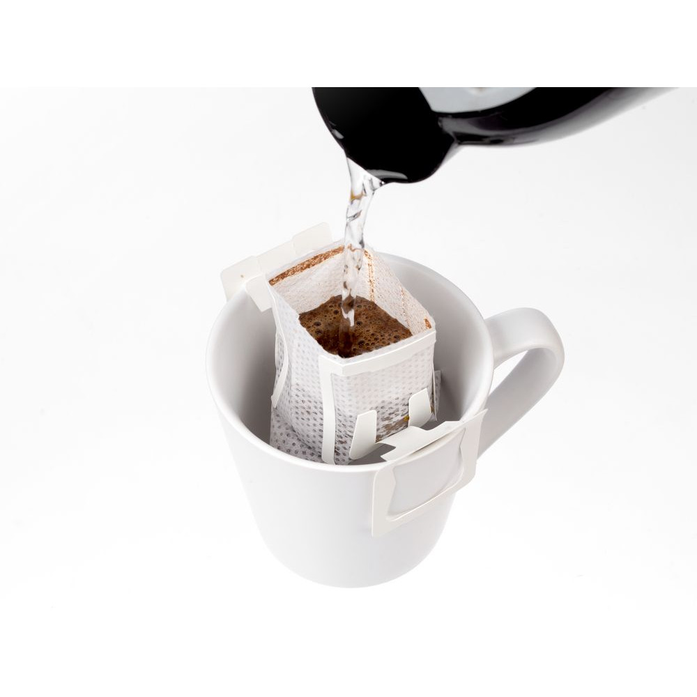 4 дрип-пакета с двумя сортами 100% бразильской арабики — Сантос и Моджиана Феникс.Для приготовления кофе потребуется только любимая кружка и горячая вода: вскройте фильтр-пакет по линии отрыва, разместите его на чашке и медленно пролейте 150-200 мл воды через молотый кофе. Если хотите получить напиток покрепче — оставьте дрип в кружке на 2-3 минуты.
