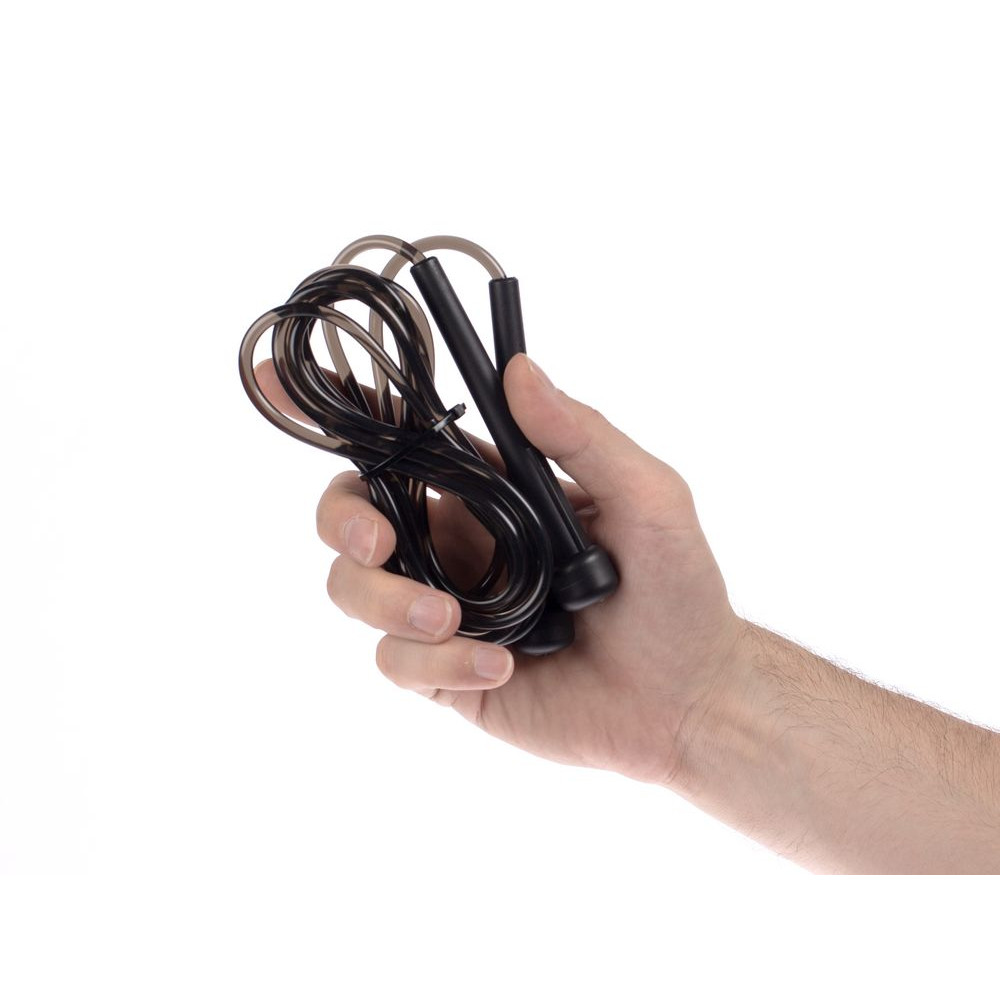 Спортивная скакалка имеет эргономичные ручки для проведения комфортных тренировок, обладает средней скоростью вращения. Способствует развитию выносливости, улучшает работу дыхательной и сердечно-сосудистой систем.