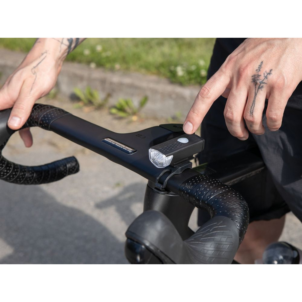 Велосипедному фонарю Markus не страшна непогода! Благодаря влагостойкому корпусу с уровнем защиты от брызг IPX4 его можно использовать даже в дождь. На велосипед фонарь крепится при помощи держателя-ремешка: просто оберните ремешок вокруг руля и зацепите крюк за одно из отверстий. Нейтральный белый свет от фонаря достаточно яркий, так что вы точно не собьетесь с пути поздним вечером.