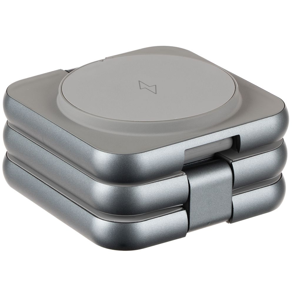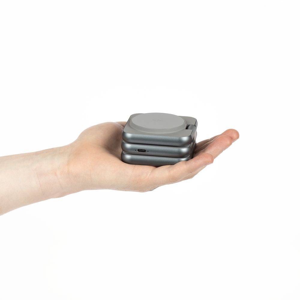Terza — компактное устройство для беспроводной зарядки сразу трех устройств. Станция легко складывается в стильный миниатюрный куб, поэтому ее удобно использовать и в офисе, и в дороге, Продуманная конструкция позволяет фиксировать пластины в любом положении, в том числе свернуть их в удобную подставку для телефона.